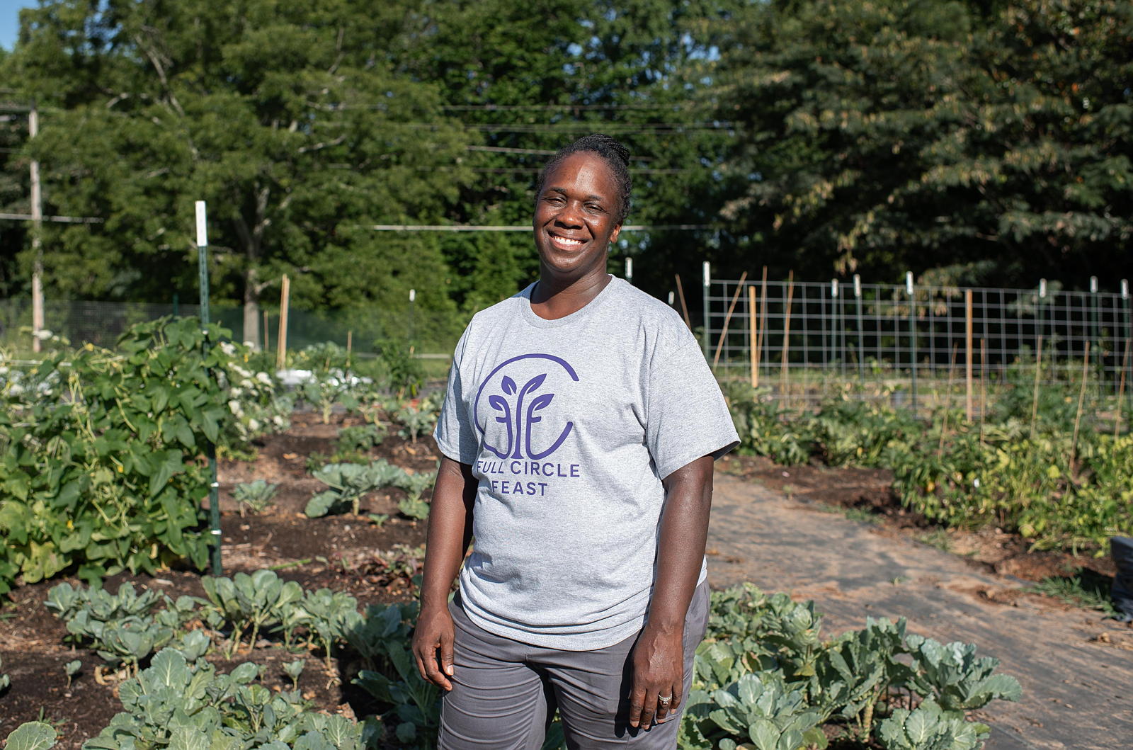 Jasmine Herndon (above), owner of Healing Hipster farm, regularly teaches classes and offers $25 Food Bundles for her community. “I’m trying to bring people to eat fresh produce. I want to make it affordable,” said Jasmine. With support from Food Well, Jasmine purchased chickens to add eggs to her bundles, funded a well to water her plants, and bought fruit trees. “I really think that everyone should continue to give because it really impacts a small local farmer."
