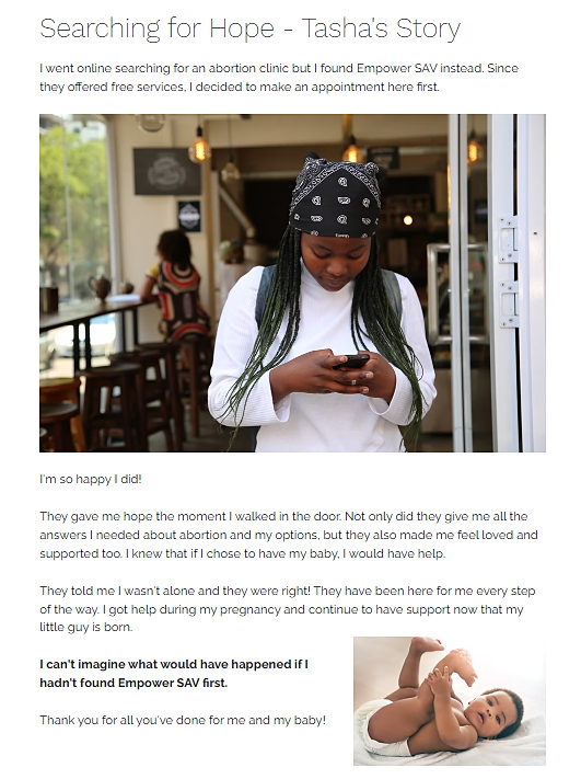 Empower SAV Women's Healthcare is a Medical Center and Mobile Unit offering no-cost healthcare to abortion-minded women. We provide life-saving ultrasounds, STD, and HIV testing. Empower SAV is made possible by the generosity of life supporters, like you through United for Life to His Glory, a 501-c3 non-profit organization. Your gift goes to helping women and couples learn the truth about their options, empowering them to choose life for their children. Donations are 100% tax-deductible.