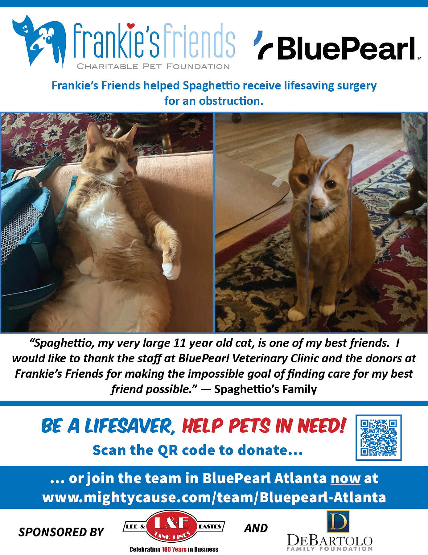 BluePearl Veterinary Partners is proud to support the work of Frankie's Friends by participating in Paws for a Cause to help family owned pets in need of lifesaving veterinary care their owners can't afford. Will you help us?