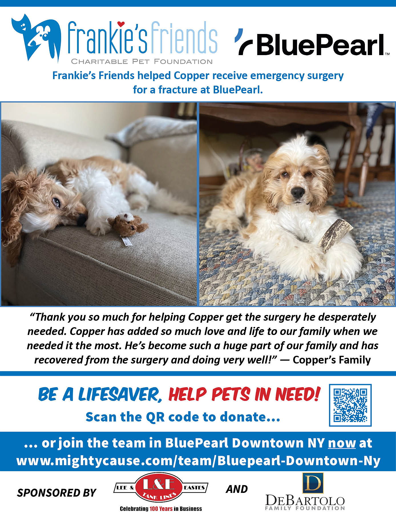 BluePearl Veterinary Partners is proud to support the work of Frankie's Friends by participating in Paws for a Cause to help family owned pets in need of lifesaving veterinary care their owners can't afford. Will you help us?