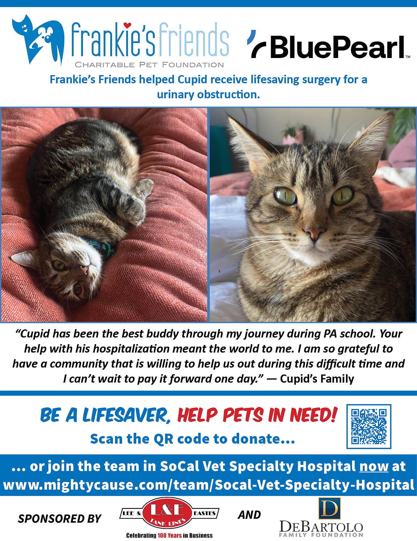 Southern California Veterinary Specialty Hospital and BluePearl Veterinary Partners are proud to support the work of Frankie's Friends by participating in Paws for a Cause to help family owned pets in need of lifesaving veterinary care their owners can't afford. Will you help us?
