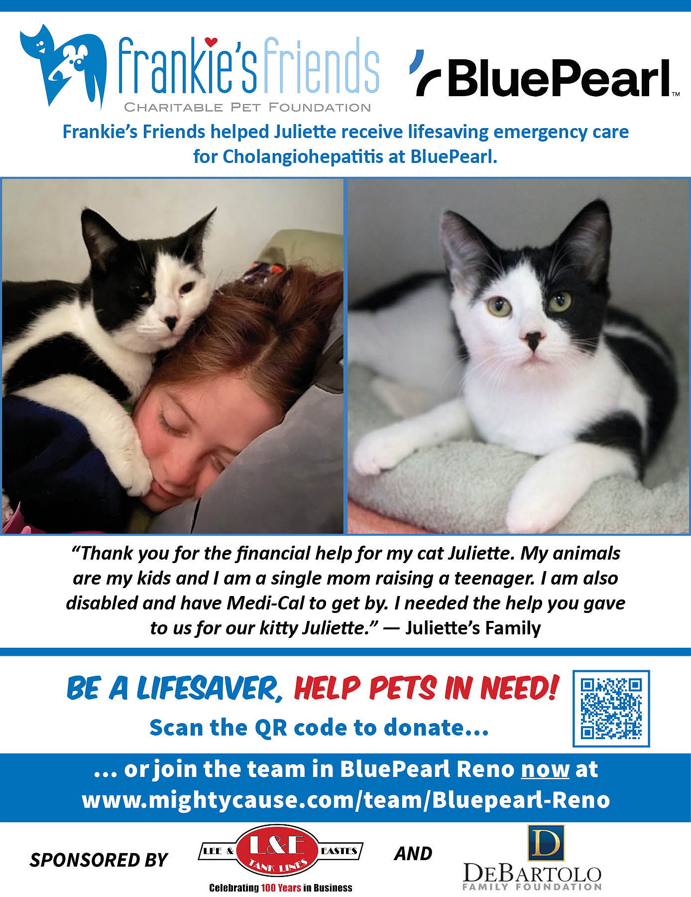 BluePearl Veterinary Partners is proud to support the work of Frankie's Friends by participating in Paws for a Cause to help family owned pets in need of lifesaving veterinary care their owners can't afford. Will you help us?